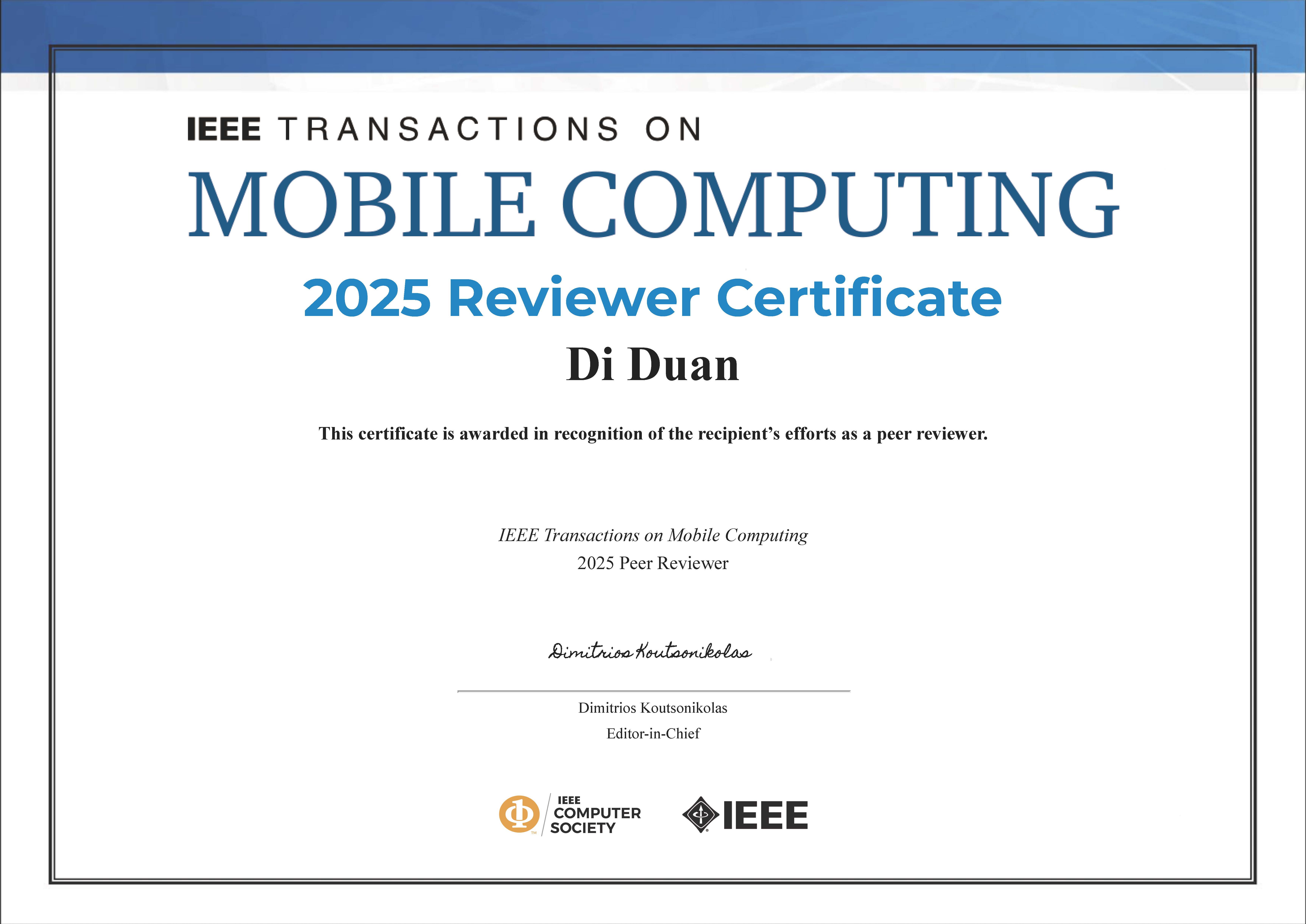 [2026/01] News! I'm glad to join the Distinguished Reviewer Board of ACM Trans on Sensor Networks (CCF B, IF=4.7). Welcome to submit papers!